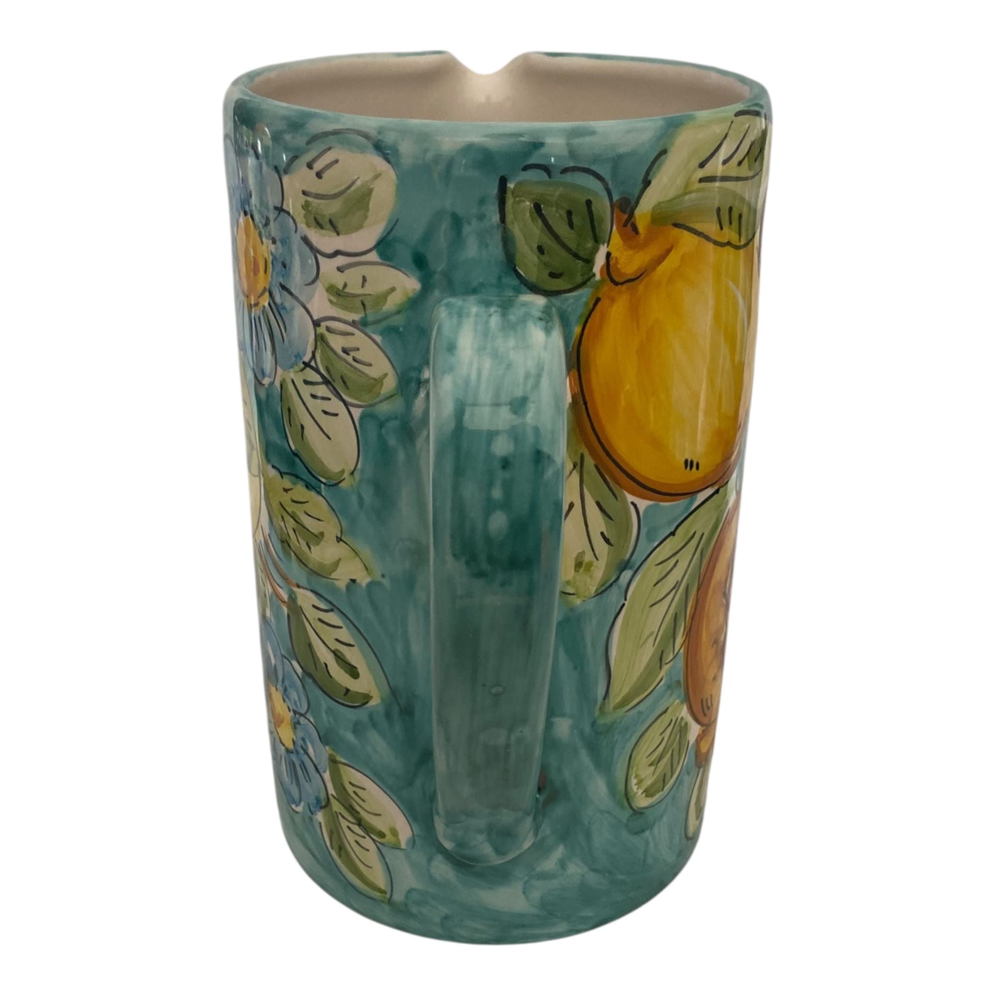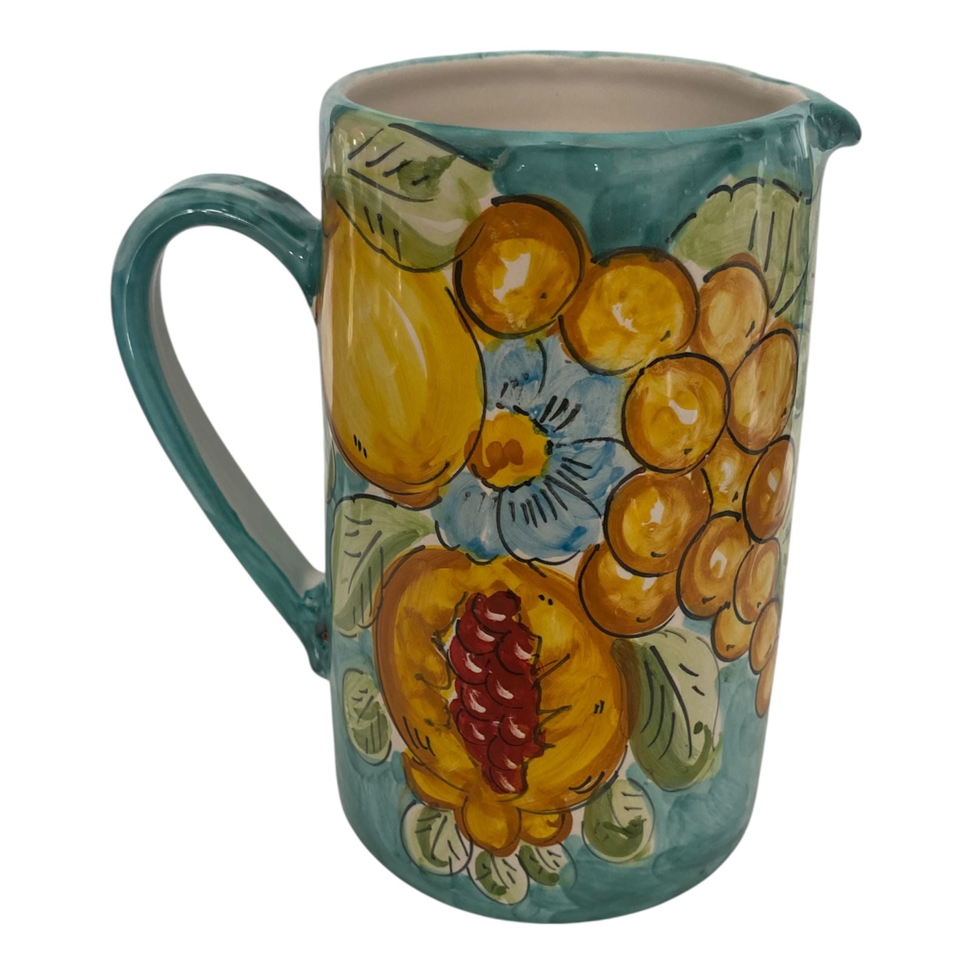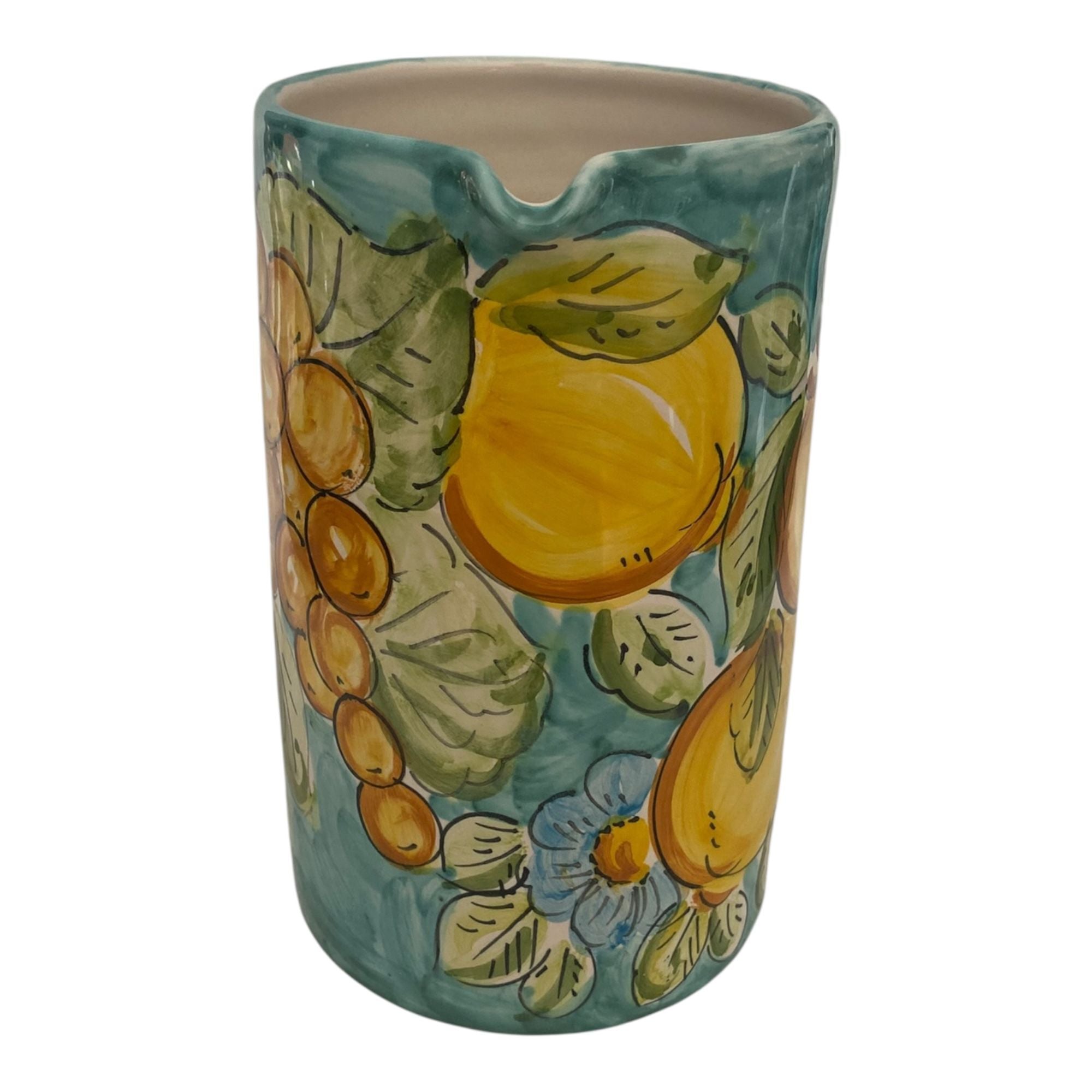 Il decoro vivace e i colori brillanti richiamano i paesaggi e i profumi tipici del Sud Italia, rendendo ogni pezzo unico e ricco di carattere. Perfetta per servire acqua, vino, succhi o per essere esposta come elemento d’arredo, unisce funzionalità e bellezza artigianale.